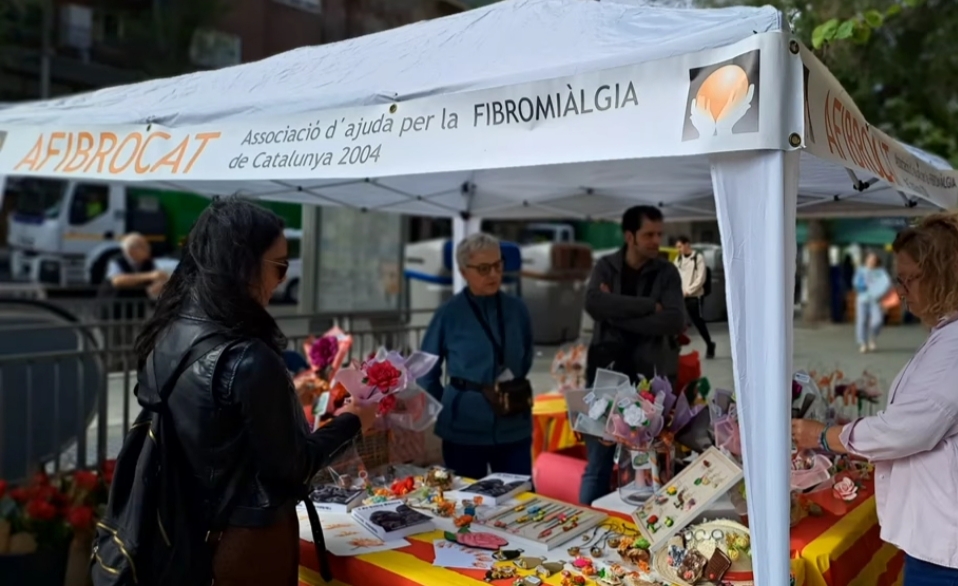 Parada de roses i manualitats d’Afibrocat a la diada de Sant Jordi 2026