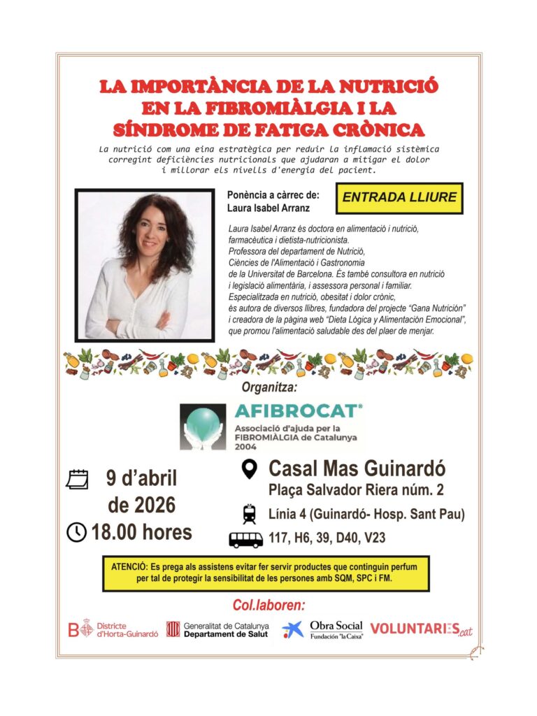 És una activitat gratuïta i oberta a tothom, organitzada per Afibrocat i que tindrà lloc al Casal d’Entitats Mas Guinardó (Pl. Salvador Riera, 2 Barcelona).
